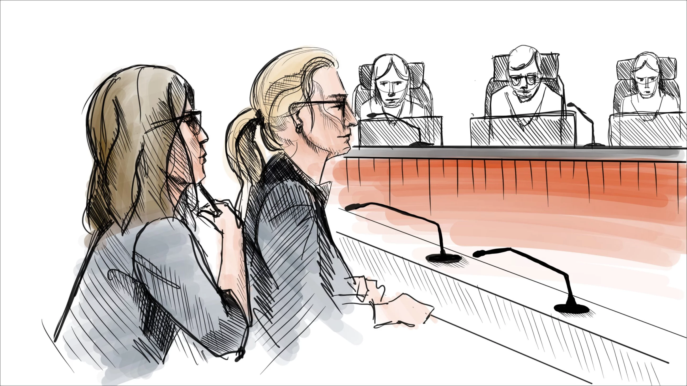 EBM:s åklagare på plats i domstolen. Illustration: Johan Hallnäs.